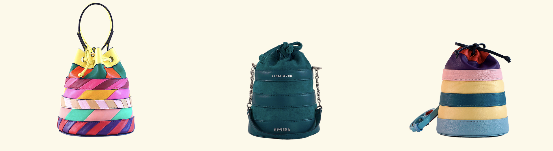 Los materiales utilizados destacan por su naturaleza, pues es cuero natural, algodón y fibras orgánicas. Además, los bolsos están hechos de forma artesanal.