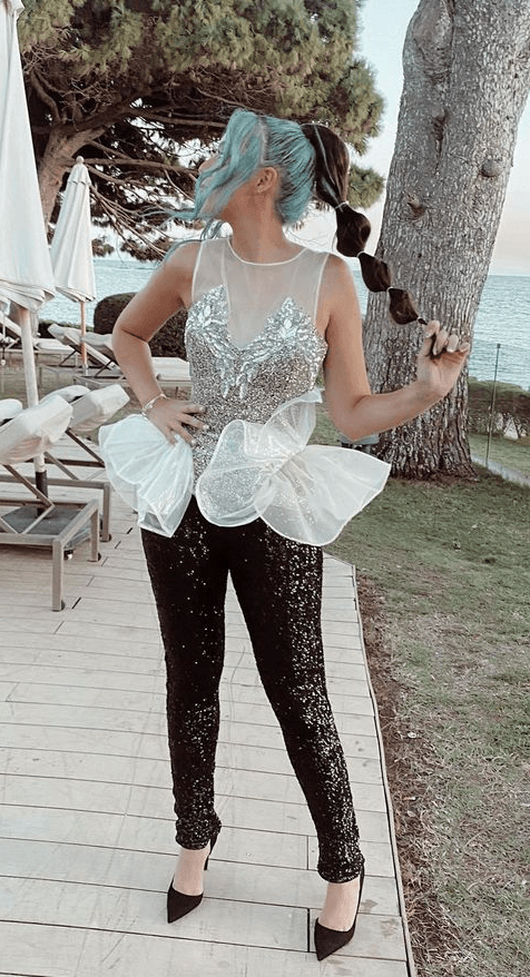 O esta combinación "shine" blanco con negro para deslumbrar a toda la fiesta.