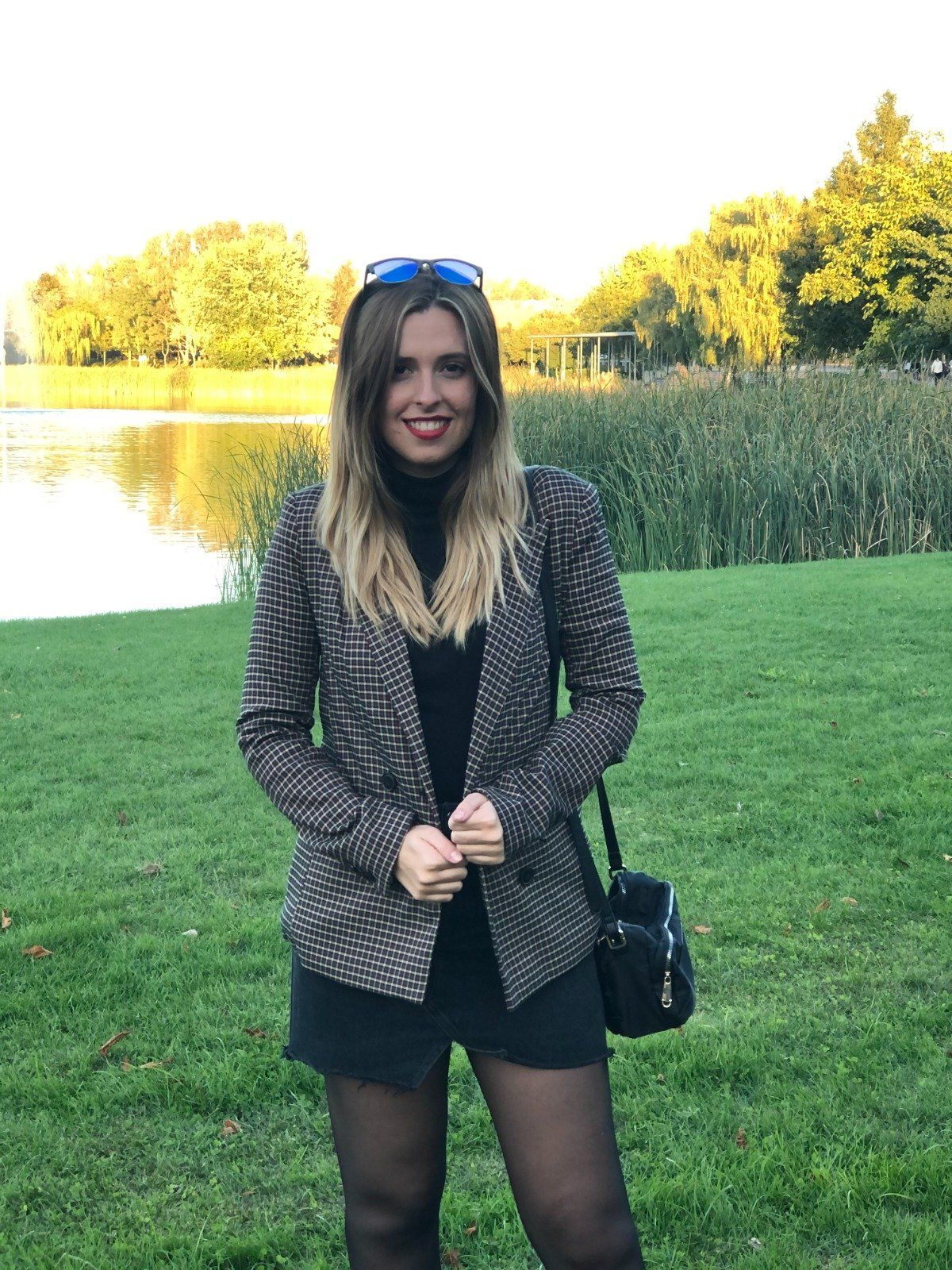 ¡Por fin sábado! Hoy nos pondremos un look total dark, acompañándolo de una americana de cuadros pequeños.