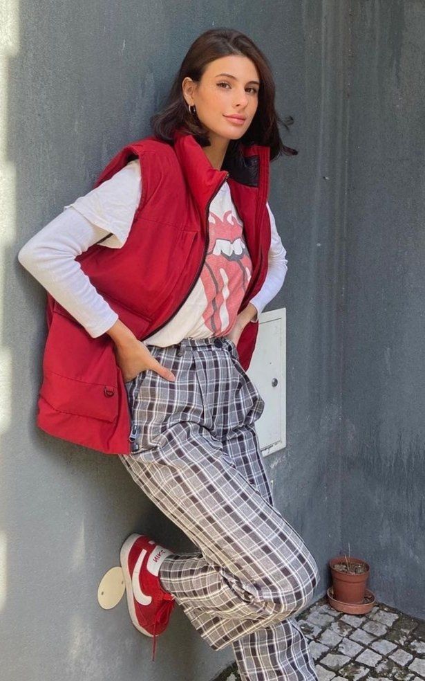 Empezamos la semana con unos pantalones de cuadros, una camiseta de los Rolling y un chaleco rojo