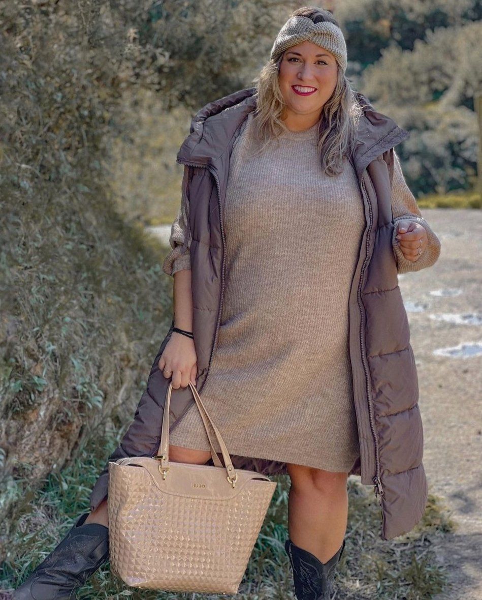 Hoy comienza el invierno y qué manera de empezarlo que usando este vestido de punto calentito, con botas y un chaleco.