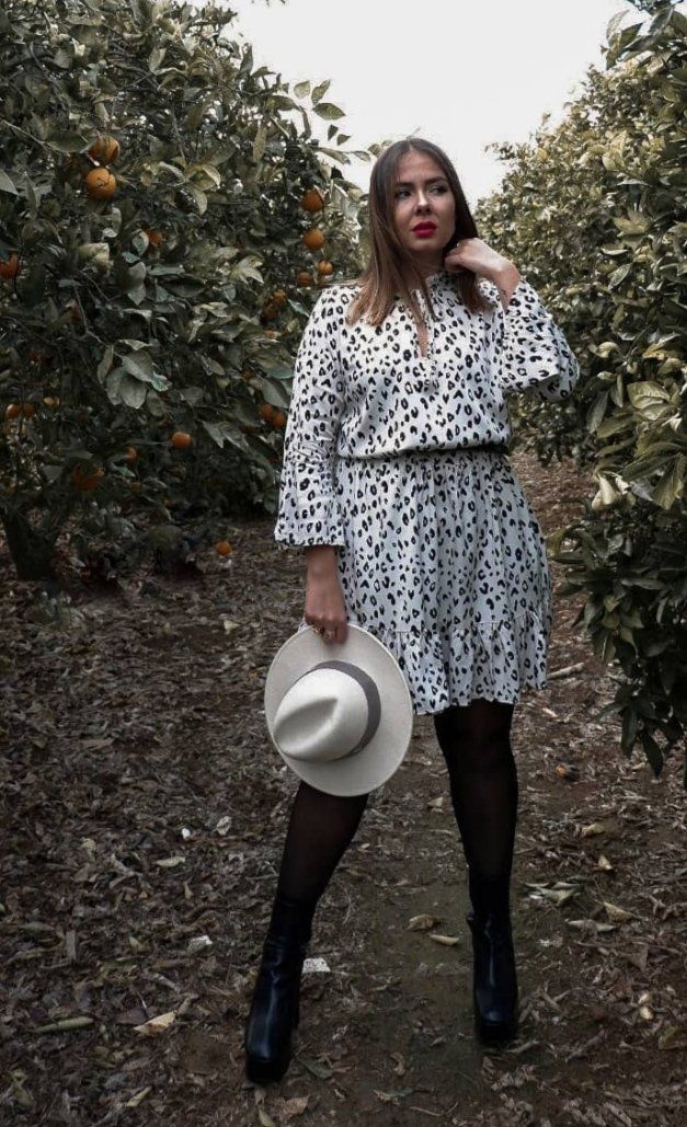 Un vestido blanco con estampado de leopardo es perfecto para la comida de hoy.