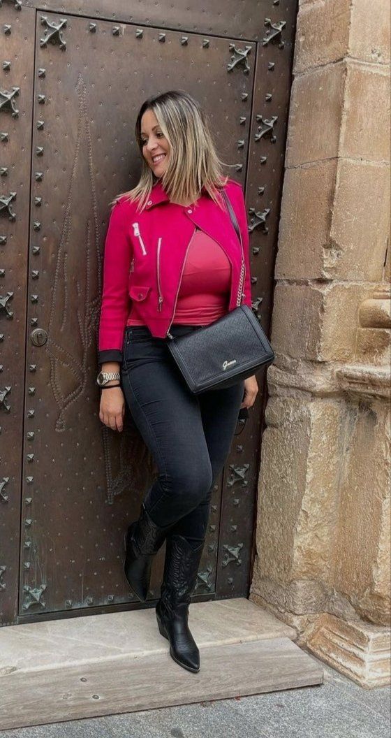 ¿Qué tal este look tan rockero para el jueves? Solo necesitamos unas botas altas, un vestido negro y una chupa de cuero negra.