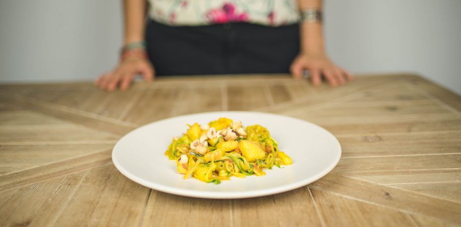 Alimenta tu belleza nos presenta hoy una deliciosa receta vegetariana y sin gluten: espaguetis de calabacín a tiras con manzana. ¡Esperamos que os guste!