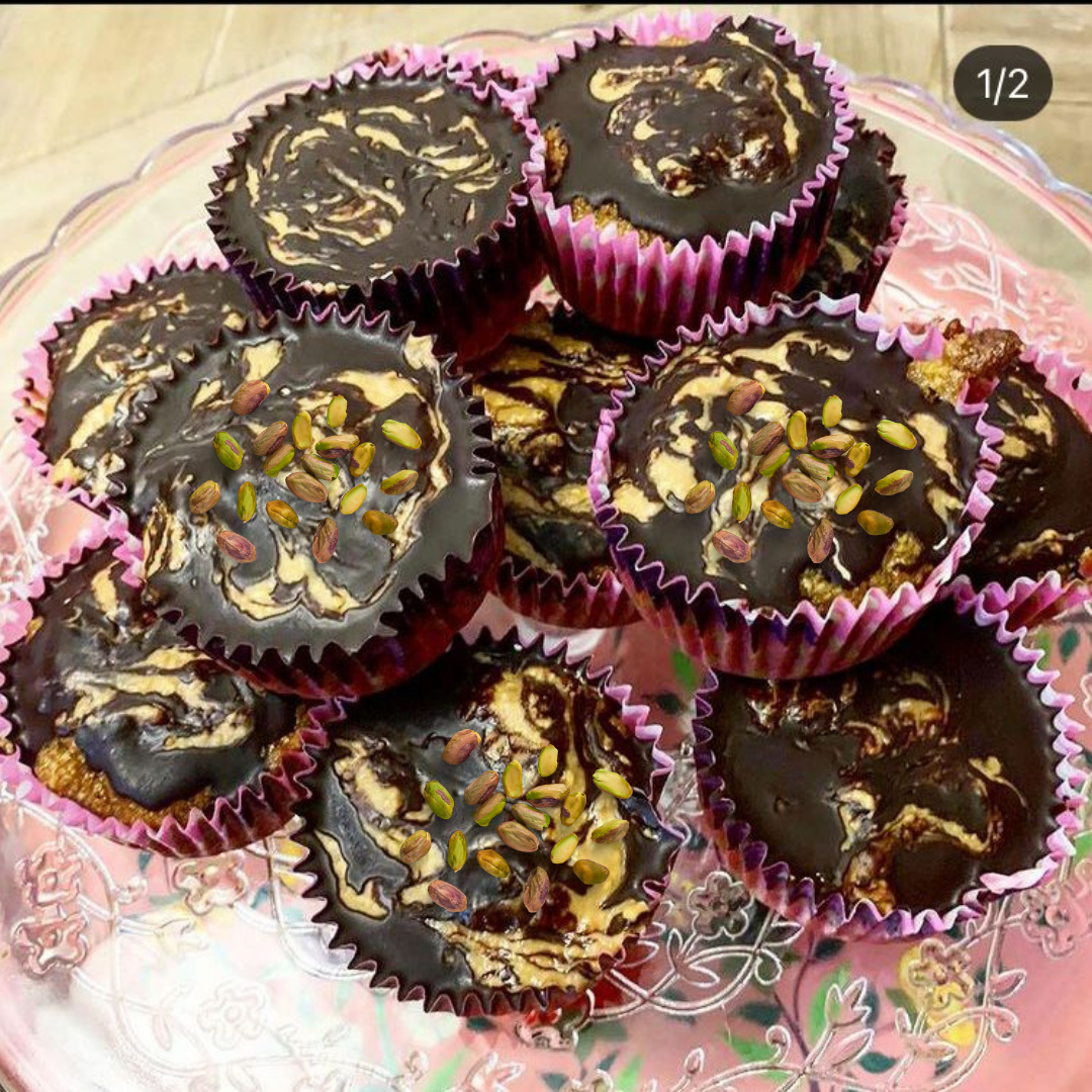 8. Decoramos con chocolate y pistachos partidos a trocitos.
