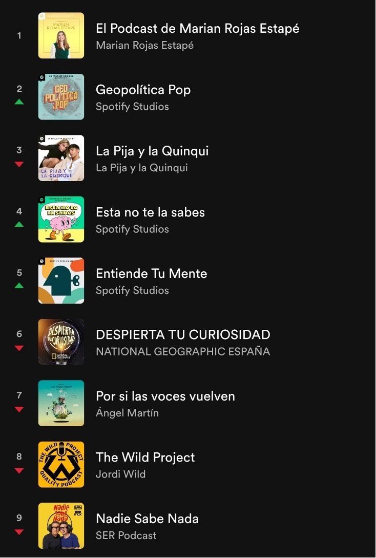 Podemos encontrarlos en iVoox, Podomatic, Apple y Spotify. A continuación os mostraremos los podcast más exitosos de España de Spotify: