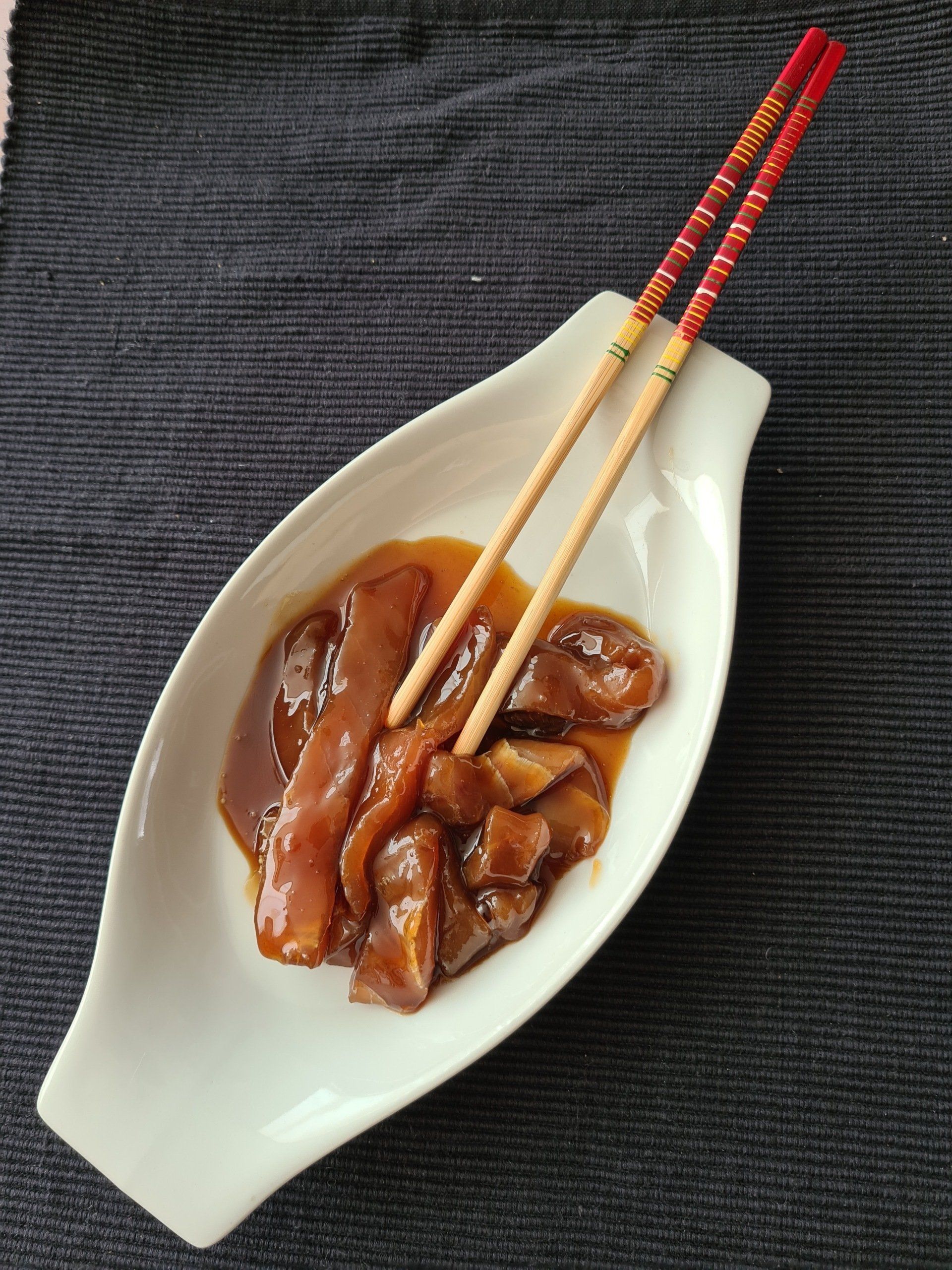 · MEZCLAMOS EN UN BOL LAS TRES SALSAS EN PROPORCIÓN DE 5 PARTES DE TERIYAKI, 3 DE SOJA Y 2 DE PERRINS SOBRE UN TOTAL DE 10 PARTES.