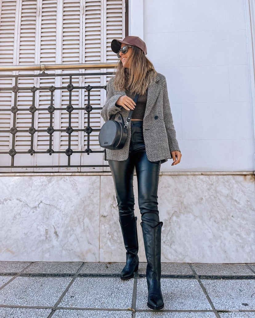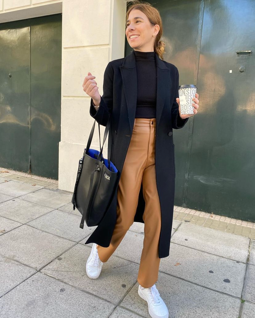 Otra buena opción de abrigo, pero para salidas más casuales. Luce espectacular al combinarla con unos leggins engomados como vemos en la imagen. Como mencioné anteriormente, en colores neutros es ideal.